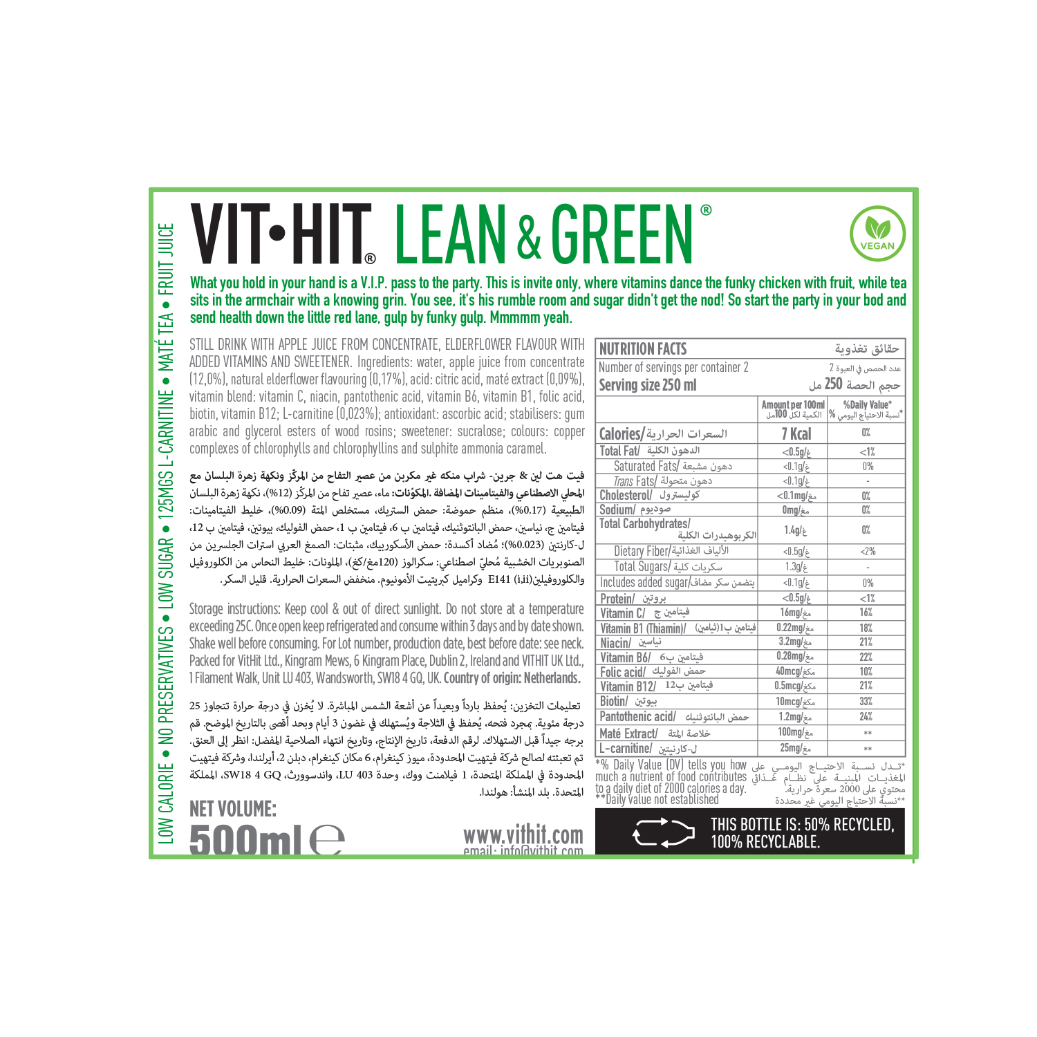 Vit Hit Lean & Green - 500ml × 12